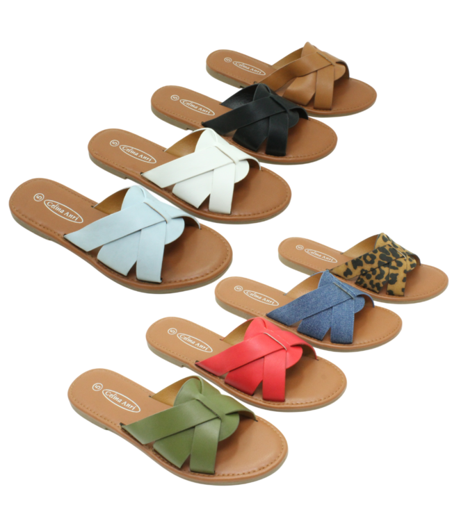 These stylish flat heel slip-on sandals are perfect for warm weather, offering comfort and a chic look for any casual outing. Ideal for the beach or a day out with friends. Read more.